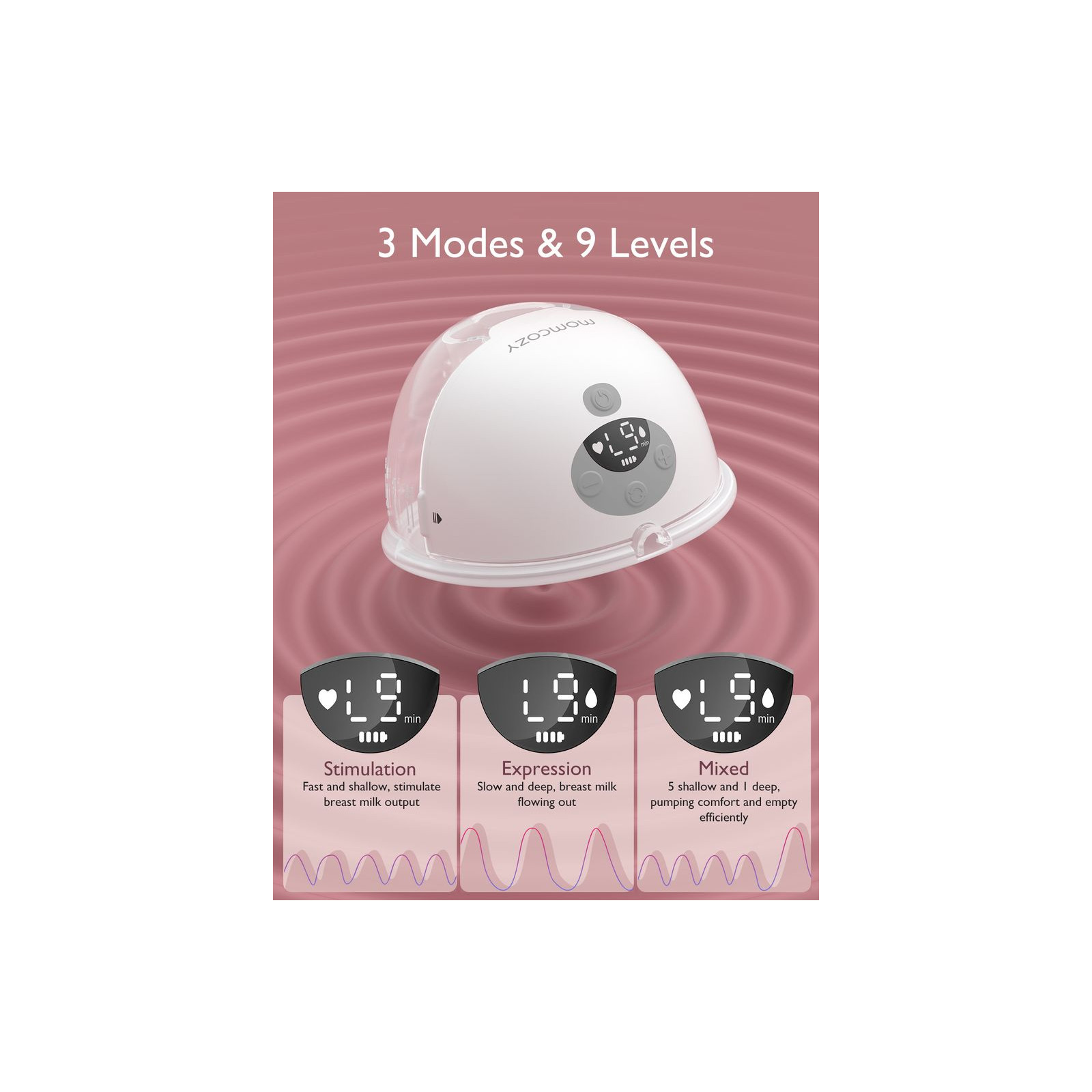 | 3 modes and 9 levels of hospital-strength suction | Micro-vibration technology helps promote comfortable milk secretion during pumping |