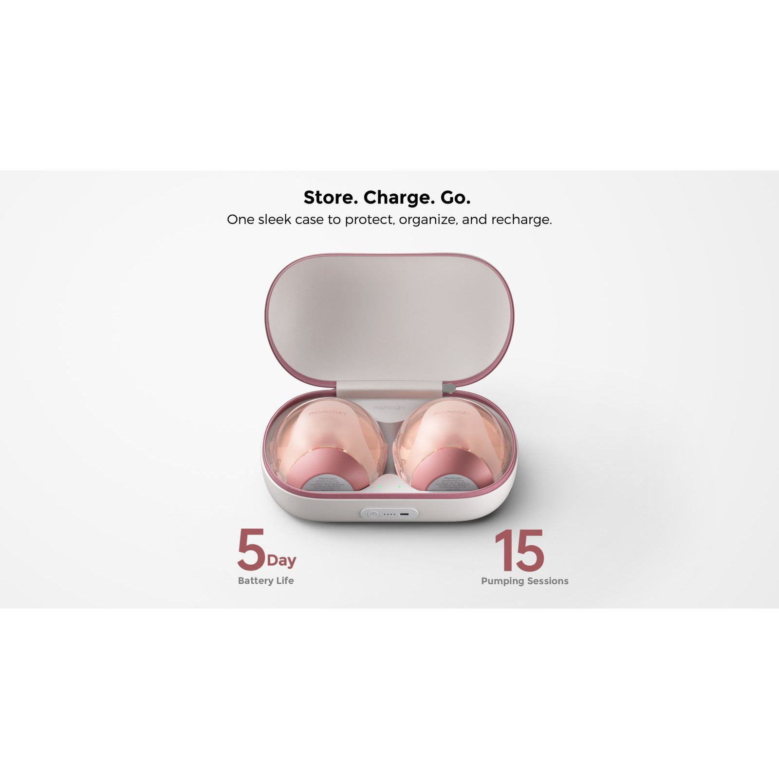 Its wireless charging case provides up to 15 pumping sessions or 5 days of use, streamlining the routine by eliminating messy cords and integrating storage. With an ultra-quiet operation (<45dB), moms can pump discreetly without disturbing others. The Momcozy app integration enables seamless pumping mode switching, real-time tracking, and full-collector notifications, making it a truly hands-free, smart pumping solution.